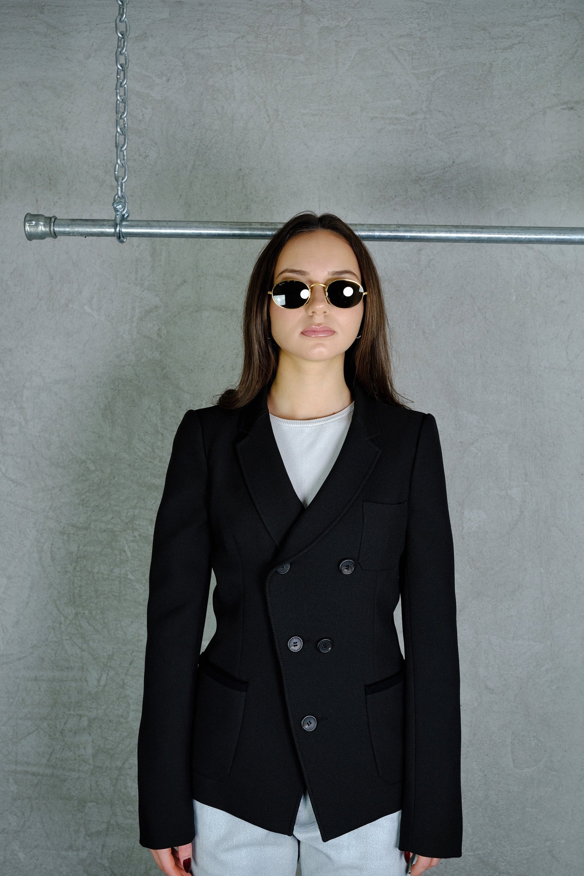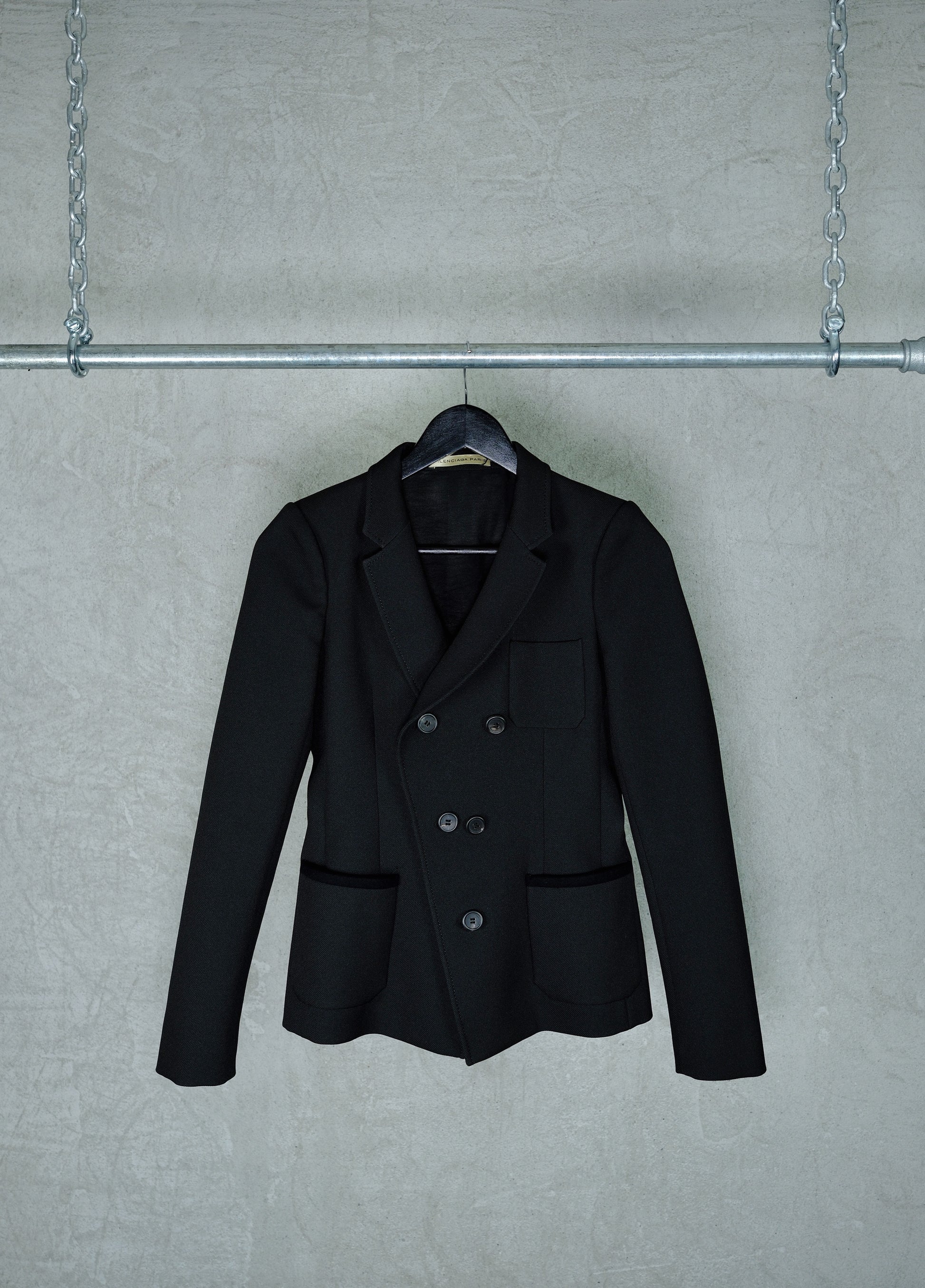 Tailored black wool blazer from Balenciaga’s early 2000s collections, designed under Nicolas Ghesquière.